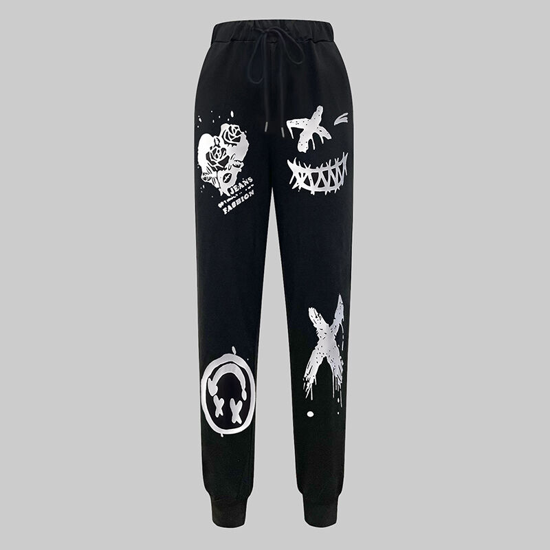 These high-quality sweatpants feature a unique combination of solid and printed patterns, offering versatile style options. The high-waisted silhouette provides a flattering fit while ensuring comfort during wear. Designed with a flat front style, they deliver a sleek, contemporary look suitable for both casual and athletic wear.
